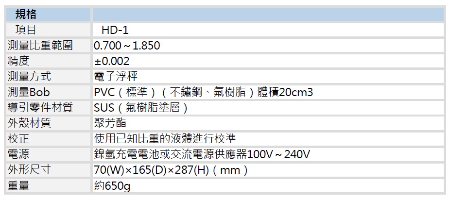 ※ HD-1主機已根據測量擺錘進行了精細校準。除了所附的擺錘之外,無法準確測量比重值。 ※ 如果執行“使用已知比重的液體的校準”或“簡單校準”,則無法撤消。 此外,這些校準只是簡單校準,可能不符合規格。 ※ 請注意,所列規格如有更改,恕不另行通知。。